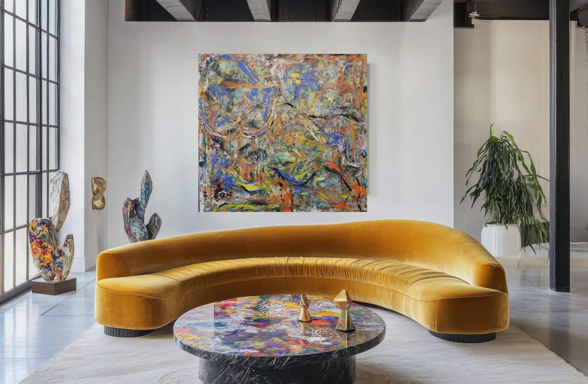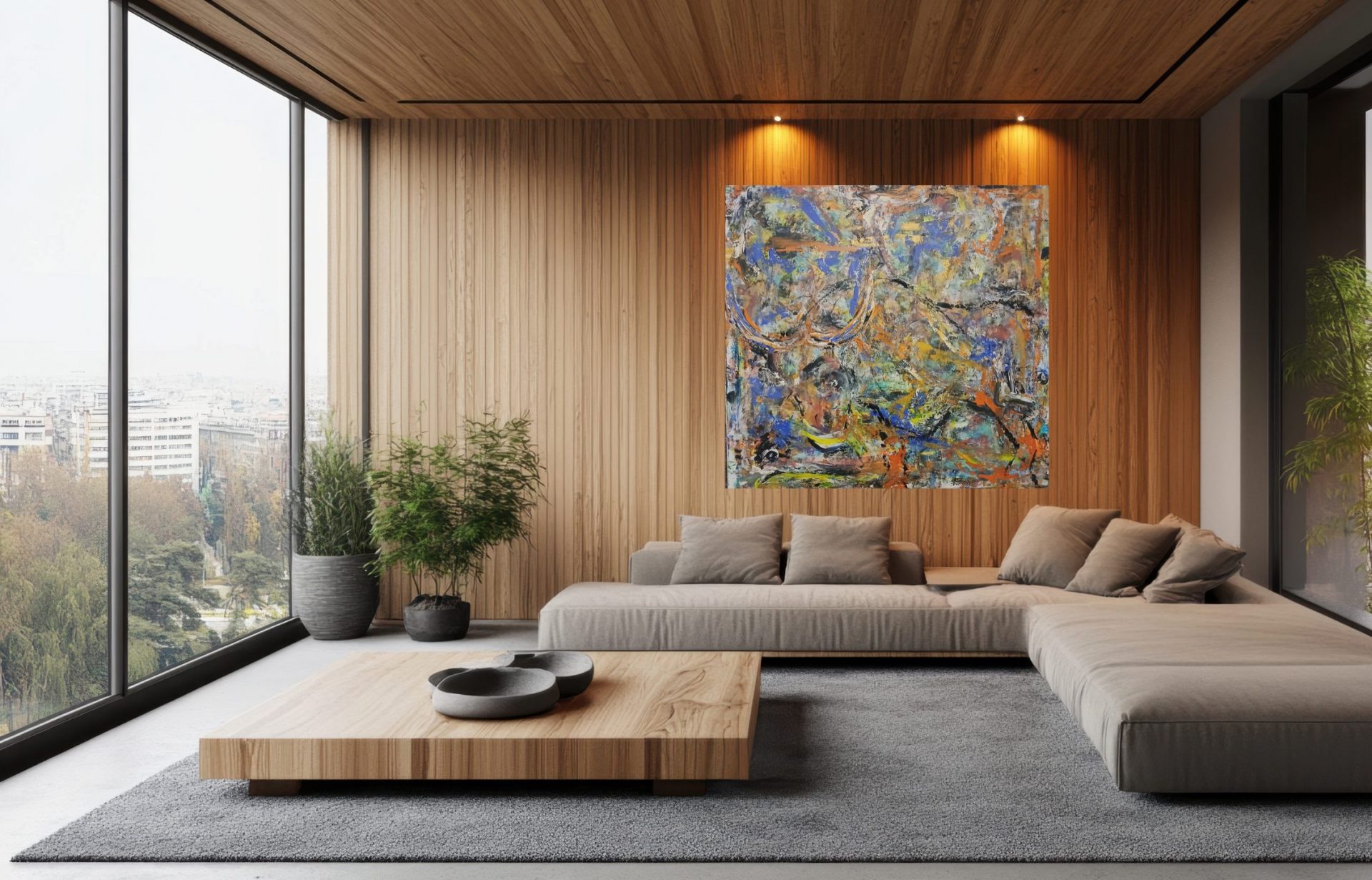 Die Komposition lebt von Kontrasten, Überlagerungen und kontrollierten Zufälligkeiten. Die abstrakte Malerei verzichtet bewusst auf eine figurative Darstellung und eröffnet einen offenen Wahrnehmungsraum zwischen Kraft, Bewegung und Widerstand. Als modernes abstraktes Gemälde eignet sich das Werk sowohl für zeitgenössische Kunstsammlungen als auch für hochwertige Wohn- und Arbeitsräume.